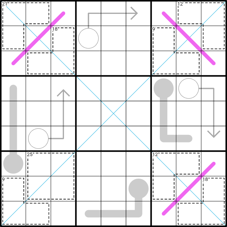 Digits on a pink renban line contain a set of consecutive digits in any order.