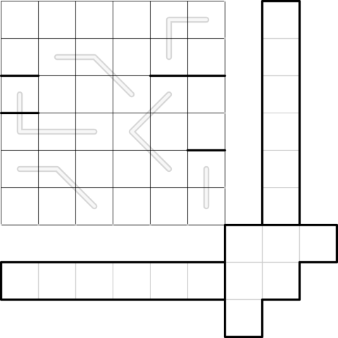 • Divide the main 6x6 grid into six 6-cell regions, which may wrap around the grid toroidally, e.g. r1c1 may orthogonally connect to r1c6, r6c1, r1c2 and r2c1;