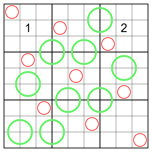 A digit in a red circle is equal to the number of red circles containing that digit.