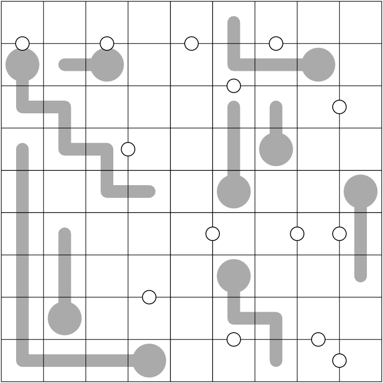 Create nine Snake Regions without overlapping any cells. Snake regions are one cell wide and nine cells long, orthogonally connected, and do not branch, cross, or touch themselves. Every Snake Region includes exactly one complete thermometer. place the digits 1-9 in every row, column, and Snake Region.
