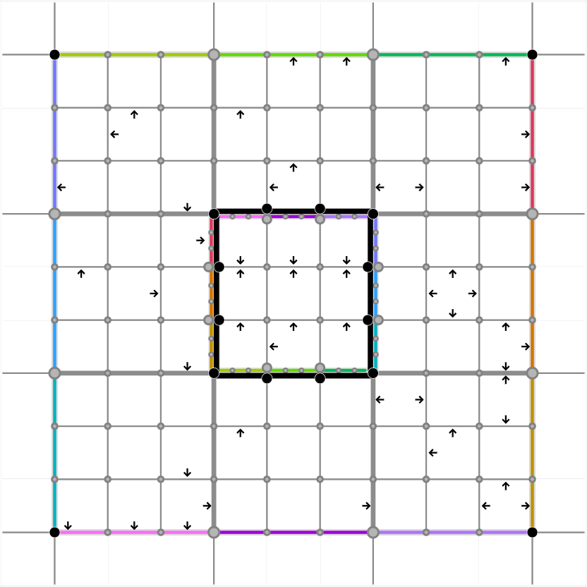 Fractal Mayhem Grid: The edges of the grid wrap around as indicated by the coloring. For example, the top cells of box five wrap to the bottom of the grid, the right edge of box 4 wraps to the right edge of the grid, and so on. Black cell borders are considered to be the grid's 'border', so r5c3 is not adjacent to r5c4.