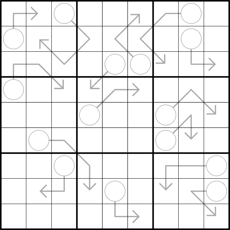 Arrows: The digit in a circle also equals the sum of the digits on each attached arrow.