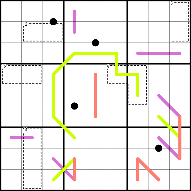 Digits in cages sum to the digit in the top left corner of the cage. Digits may repeat in a cage.