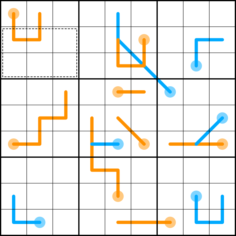 Digits in a cage can not be in a 1:2 ratio with an orthogonally adjacent digit.(in and outside of the cage)