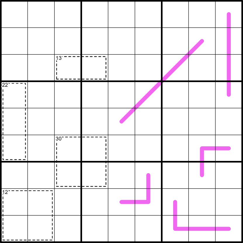Renban Lines: Each line must contain a set of consecutive digits in any order.