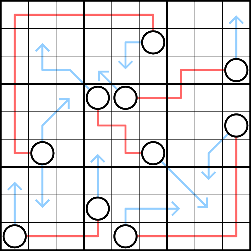 - Yin-Yang: Shade some cells such that all shaded cells are orthogonally connected and all unshaded cells are orthogonally connected. No 2x2 area is entirely shaded or entirely unshaded.