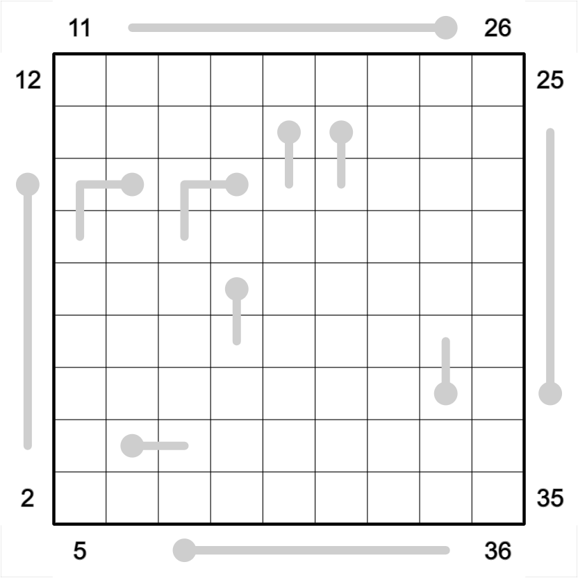 - Full Rank: Rows and Columns form nine digits number read from the direction of a clue just outside the grid. These numbers are ranked from 1 to 36 in ascending order. There are no ties in ranks.