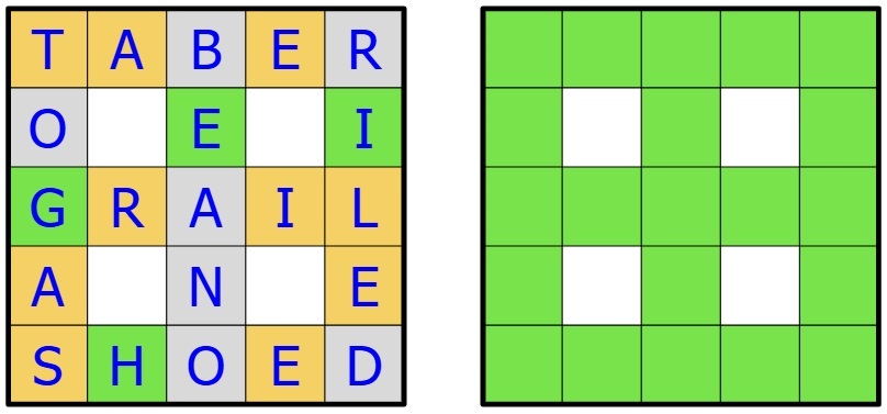 The left hand crossword is an attempt to guess the right hand crossword.
