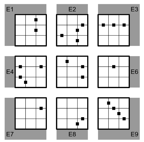 The positions of the patchwork pieces are uniquely determined by the borders drawn on the edges, each piece can only be placed in its designated position within a puzzle, without rotation or reflection. This also means that the 9 Sudokus each contain the same type of element, but in different positions.