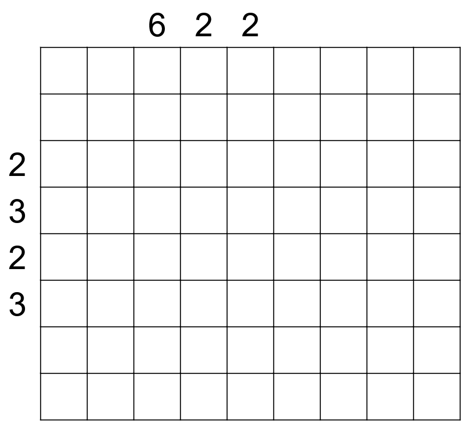 Solution code: row 2 then column 8, lengths of contiguous blocks of cells belonging to the same part (unknown number of digits, sum 17(=9+8))
