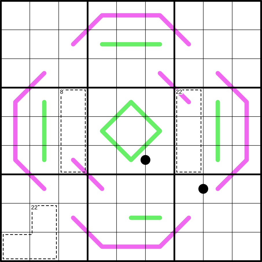 Renban lines: purple lines contain a non-repeating set of consecutive digits in any order.