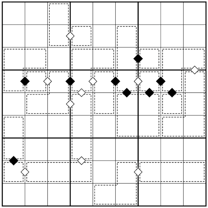 A white diamond between two cages means that the difference between their cage totals is equal to the topmost/leftmost digit in the column/row in which that diamond appears.