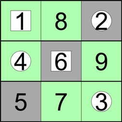 – Every digit on a Palindrome Line must either be a valid CIRCLED cell or a valid SQUARED cell, or both at once, per the Still Life rules. This rule also applies to the one digit palindrome (ie, the cell with the dot).