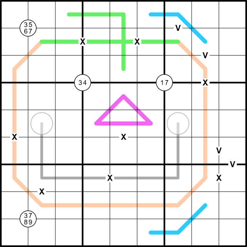 - Pink (Renban) Lines: Contain a non-repeating set of consecutive digits in any order.