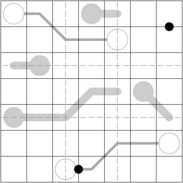 • Kropki: digits separated by a black dot must have a ratio of 1:2. Not all possible dots are given.