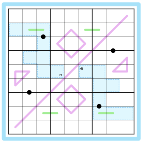Marty: reactions have varied to this a lot, difficulty wise. After the approachable break-in, a lot of people are really struggling with the rest, with some saying 4 star. Initially the puzzle was published without the pink triangles - the puzzle is still solvable but is even harder