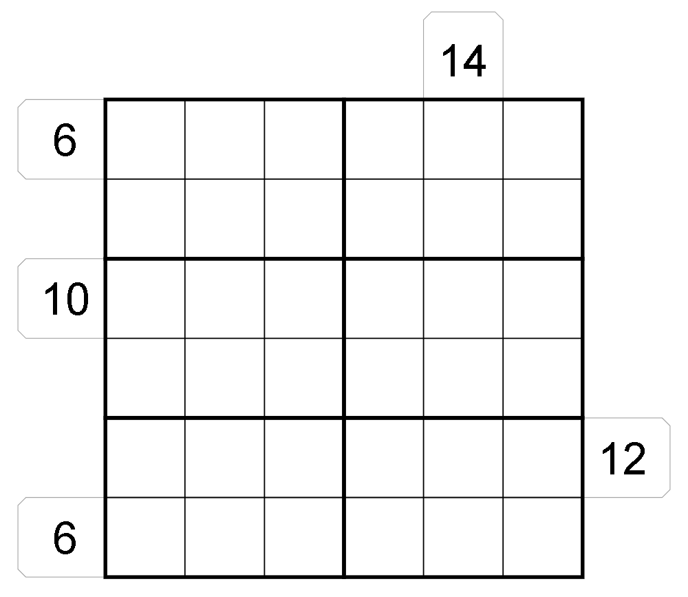 A value outside the grid is the sum of the first X digits in the row or column, from the direction of the clue, where X is the first digit seen.