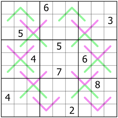 Pink lines contain a non-repeating consecutive sequence in any order.