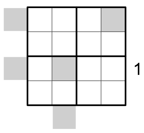 Skyscrapers: Digits in the grid represent skyscrapers, with their values corresponding to their heights. Taller skyscrapers obscure all shorter skyscrapers behind them. Clues outside the grid indicate the number of skyscrapers that can be seen in that row/column, from the line of sight of the clue.