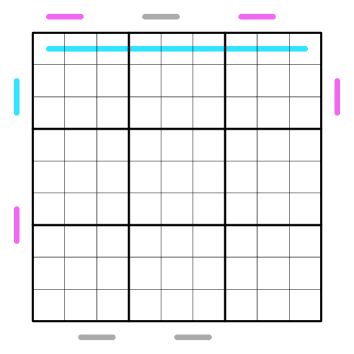 • 3-whisper lines : Adjacent numbers along a cyan 3-whisper line have a difference of at least 3.