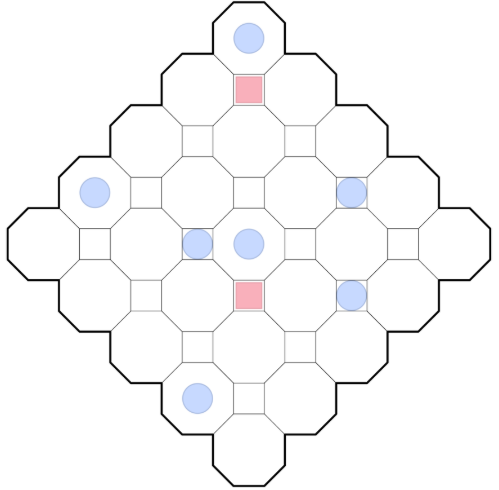 • The blue circles and red squares combined form a complete set of digits 1-9.