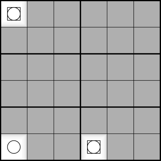 In Example 2 (using the digits of a normal 9x9 sudoku grid), a 3x3 box is shown filled with digits and clues (circles and squares), the Game of Life pattern that is shown is stable, and all the clues are fulfilled. This could appear in a Still Life Sudoku puzzle. fog of war FOW