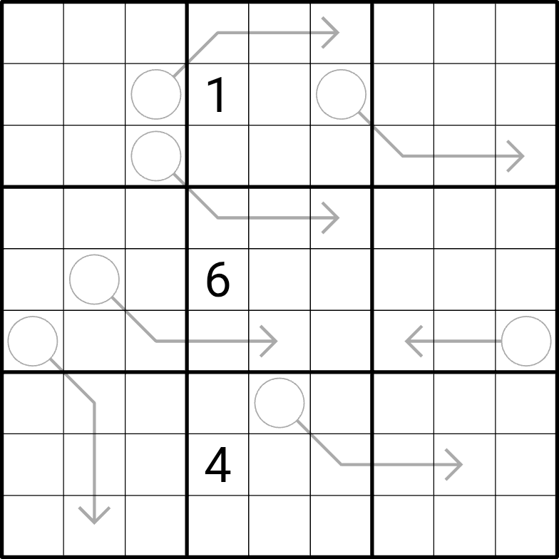 Arrows: Digits on an arrow sum to the number in the attached circle.