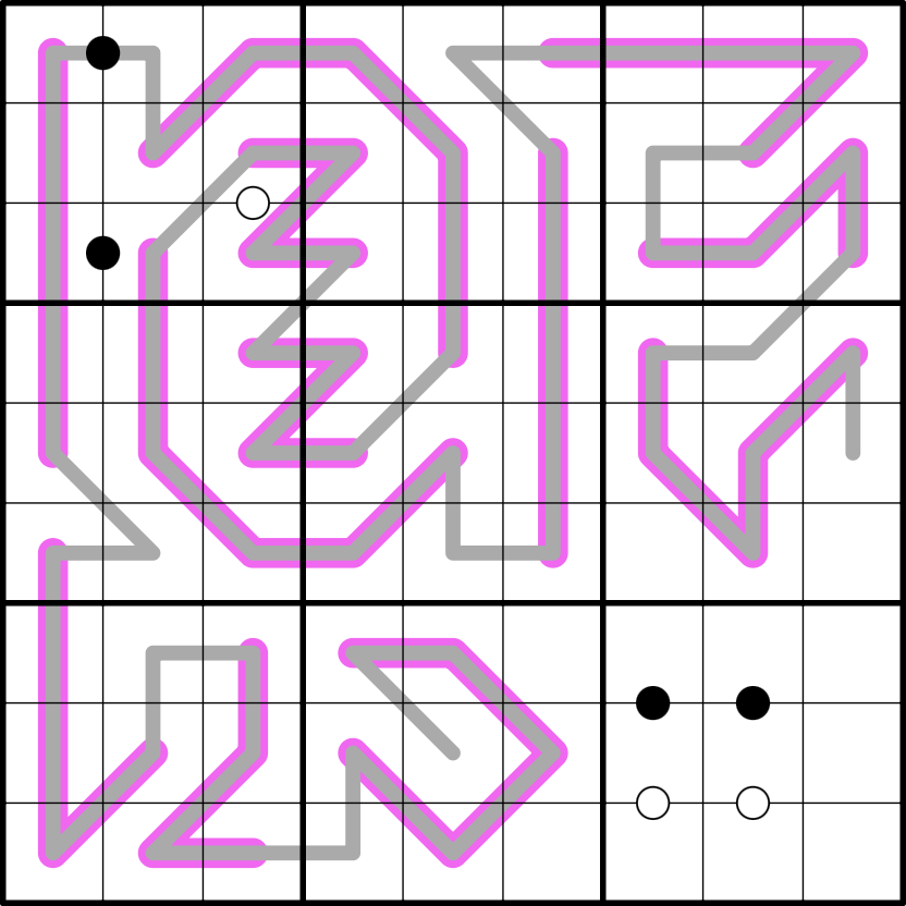 • Digits separated by a black Kropki dot are in a 2:1 ratio.