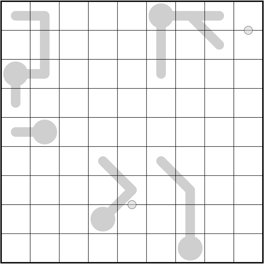 Chaos Construction: Divide the grid into nine orthogonally-connected regions, so that each row, column and region contains all the digits 1 through 9 without repetition.