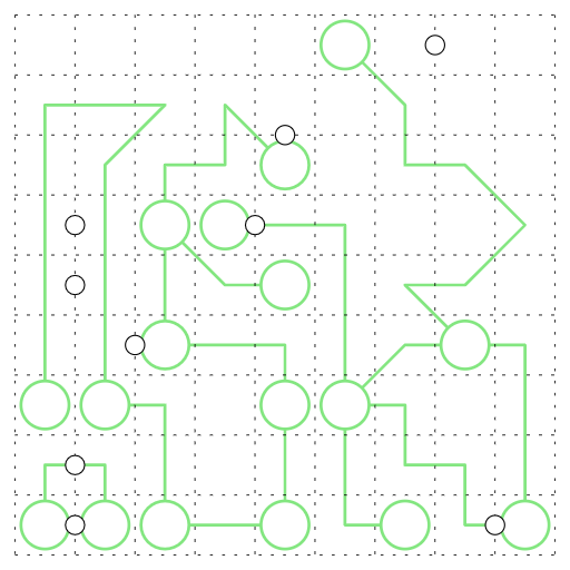 Kropki: Cells separated by a white dot must contain consecutive numbers.
