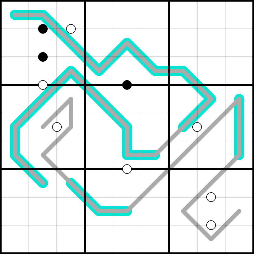 • Digits separated by a black Kropki dot are in a 2:1 ratio.