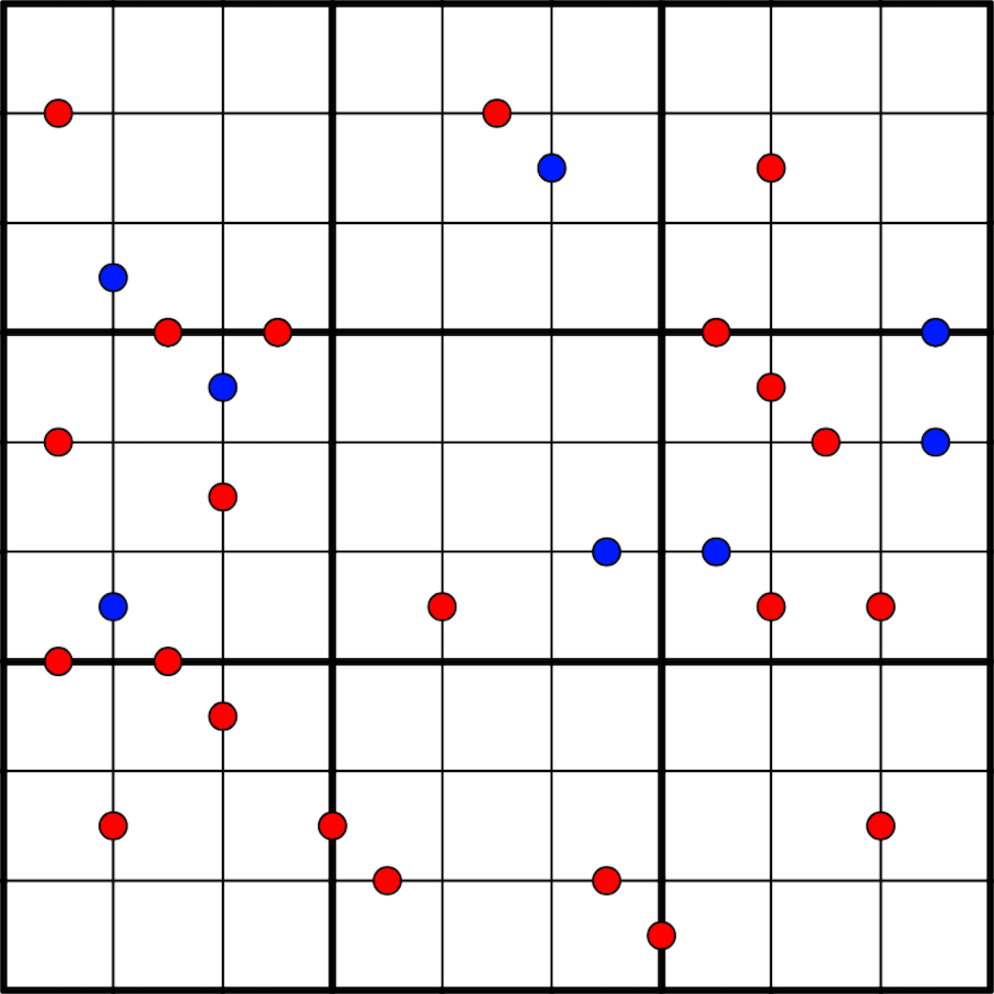 All red dots are given but not all blue dots.