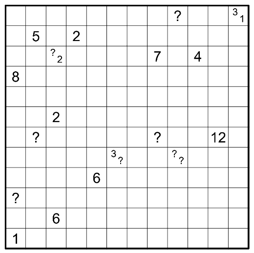 - Questionmarks replace a positive integer as a clue.