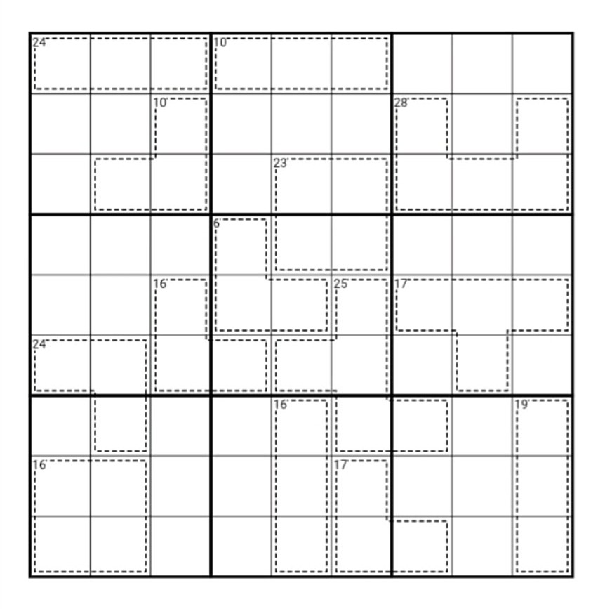 Numbers in killer cages add to the number in the top corner of the cage. Numbers cannot repeat in a cage.