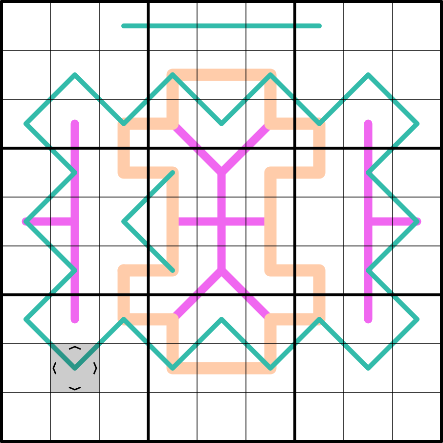 Put the digits 1-9 once each into each row, column and 3x3 box such that, additionally: