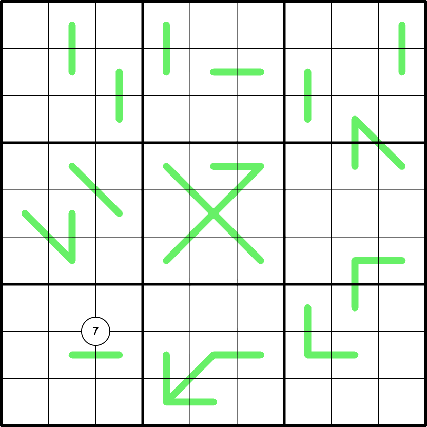 German Whispers puzzle, with a negative constraint on orthogonally (but not necessarily diagonally) connected cells
