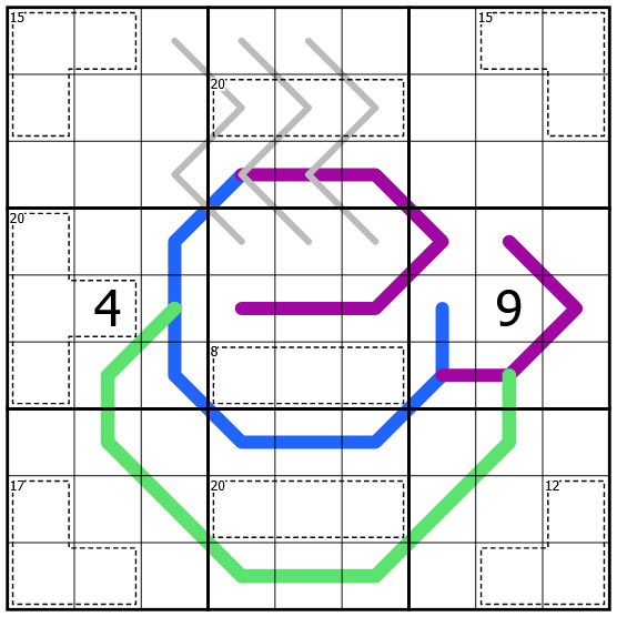 Renban line: Numbers on this line must be consecutive, cannot repeat, and can appear in any order.