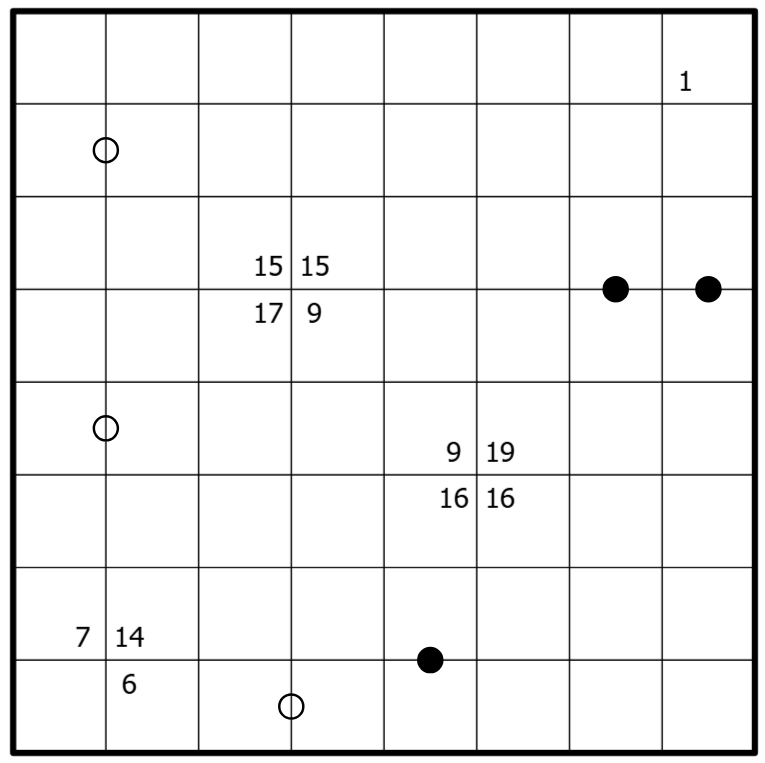 Unique regions: The final grid is fully partitioned into regions of orthogonally connected cells (a region may consist of a single cell). Each region is built from digits belonging to a single team, and orthogonally adjacent regions belong to opposite teams. Digits do not repeat within a region. All regions are unique in their composition of digits.
