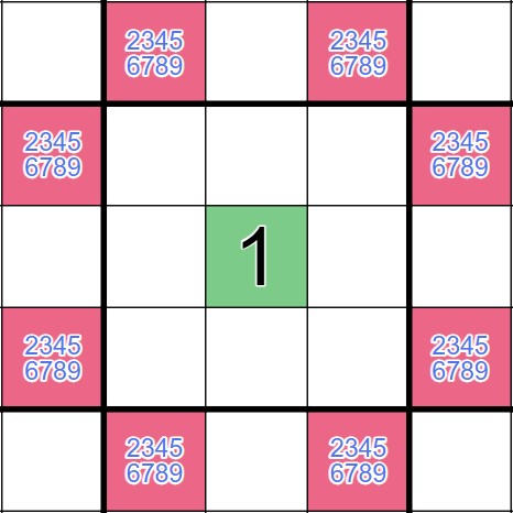 Antiknight: Cells seperated by a knight’s move (in chess) cannot have the same digit.