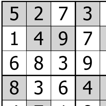 within their box are shaded. All the shaded cells are given. For example a valid box can look like this (note that only the digits inside the box are relevant for the shading):