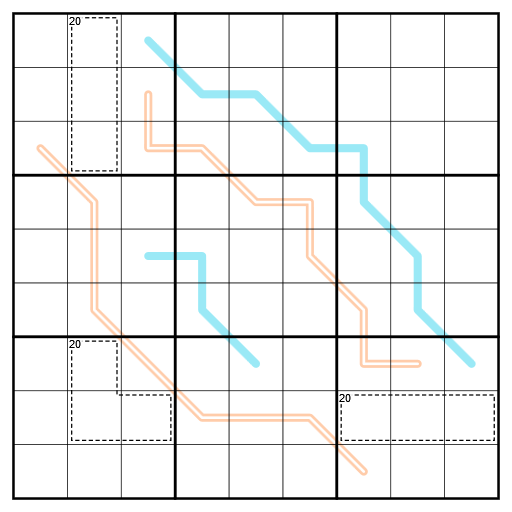- Region Sum Lines: Box borders divide the blue lines into segments with the same sum. (Different lines may have different sums.)