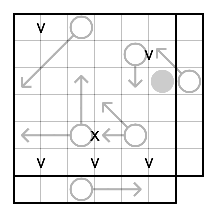 XV-SUMS: Cells separated by a V sum to 5. Cells separated by an X sum to 10. Not all Vs or Xs are necessarily given.