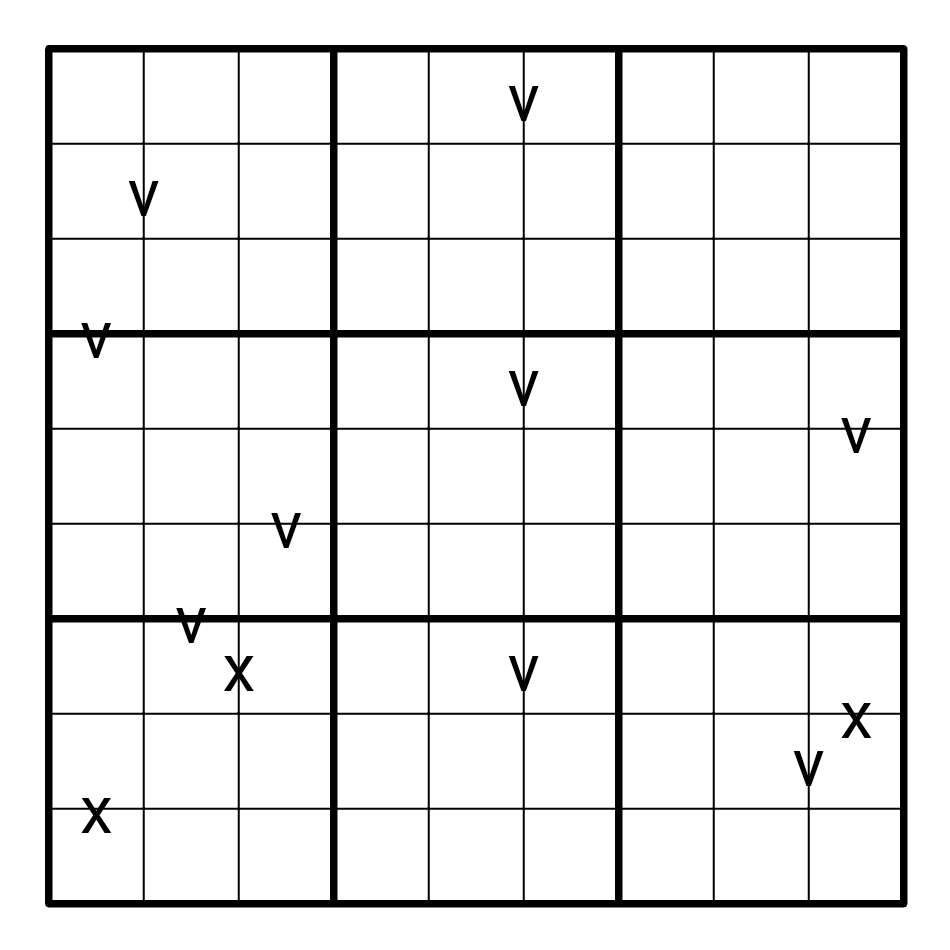 2. Cells joined by a V sum to 5. Cells joined by a X sum to 10. Not all V and X sums are given.