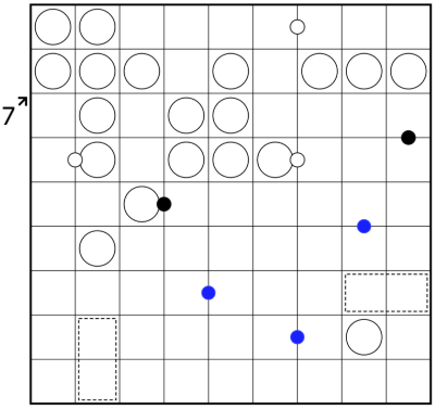 Blue dot: The two cells belong to different regions. Note that both cells must still belong to a region.