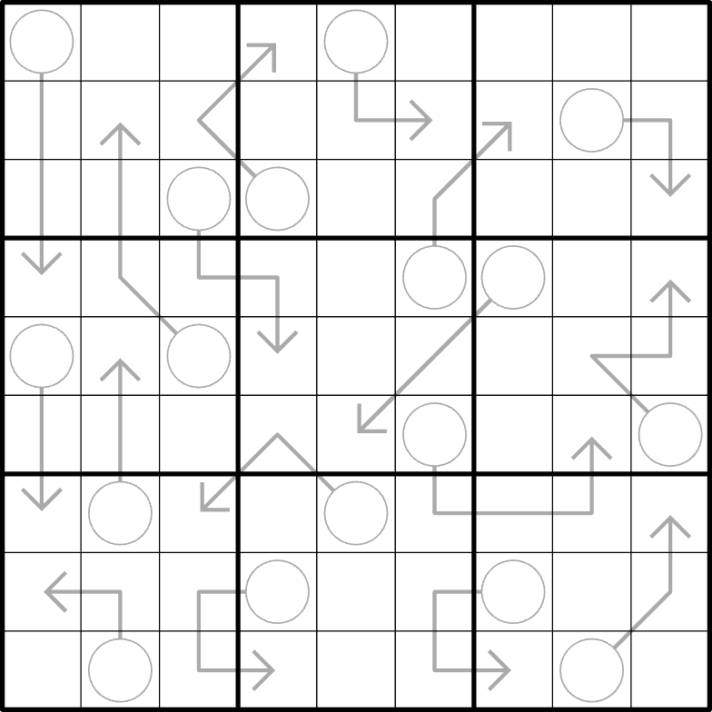 Arrows: The digit in a circle also equals the sum of the digits on each attached arrow.