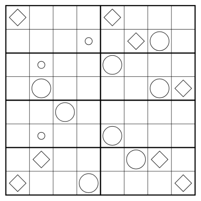 Extra regions: digits in both Diamonds and Large Circles are set of 1-8. (Small circles may repeat).