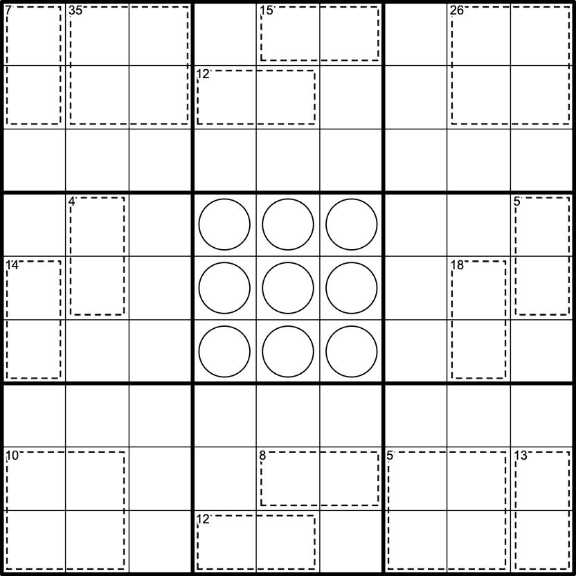 - Values in a cage sum to the indicated total.