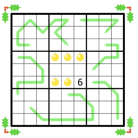 The digit on a gold bauble indicates exactly how many times that digit appears on green tinsel.