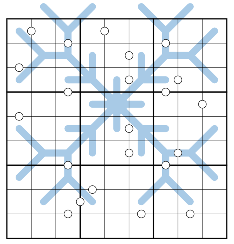 The parts of the snowflake sticking out of the grid are purely decorative.