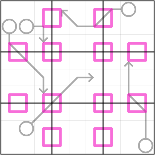 Digits along a weak renban line (pink) form a set of consecutive digits in any order, that CAN contain repeats.